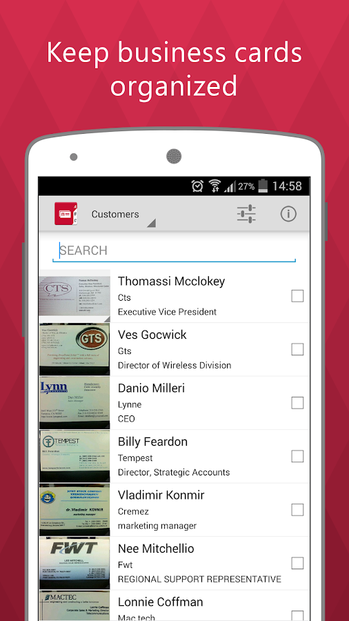Scan Your business cards. Recognize And Manage Your contacts.